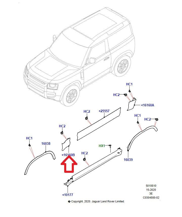 LR149399 LR146710 LR130591 Çamurluk Kaplaması Sağ Ön Defender